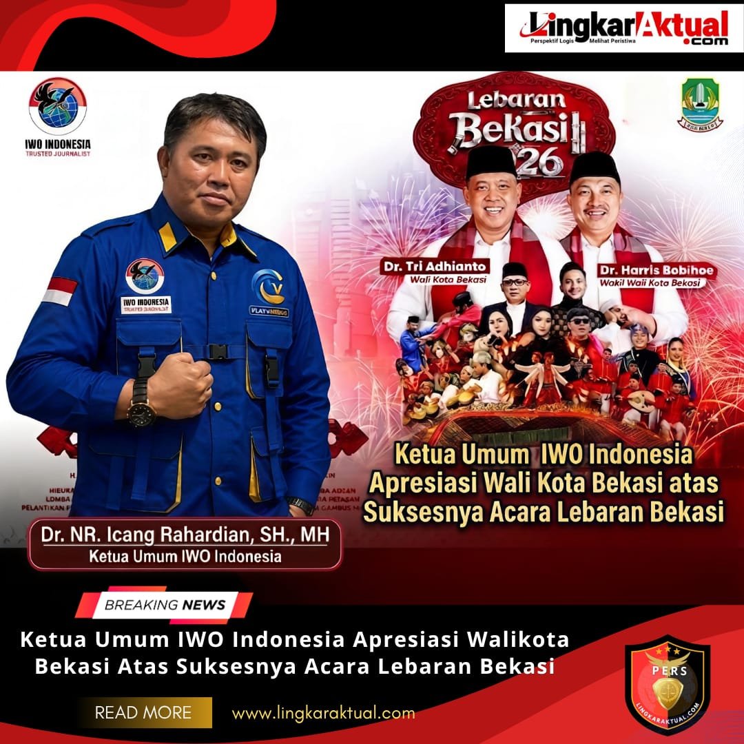BEKASI, JAWA BARAT || LINGKARAKTUAL.COM || – Ketua Umum Ikatan Wartawan Online (IWO) Indonesia, Dr. NR. Icang Rahardian, S.H., M.H., memberikan apresiasi setinggi-tingginya kepada Wali Kota Bekasi, Tri Adhianto, atas kesuksesan penyelenggaraan perhelatan akbar “Lebaran Bekasi” pada Sabtu -Minggu 25 – 26 April 2026. Acara tahunan tersebut dinilai berlangsung meriah, khidmat, dan mampu mempererat persatuan masyarakat.