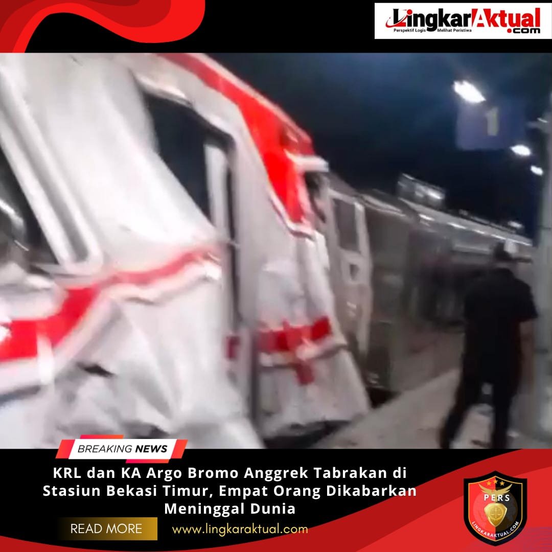 BEKASI, JAWA BARAT || LINGKARAKTUAL.COM || – Kecelakaan kereta api terjadi di kawasan Stasiun Bekasi Timur, Senin malam (27/4/2026) pkl 21:00 Wib. Insiden tersebut melibatkan rangkaian KRL Commuter Line dengan Kereta Api Argo Bromo Anggrek. Peristiwa ini sontak menghebohkan warga sekitar dan para penumpang yang berada di lokasi.