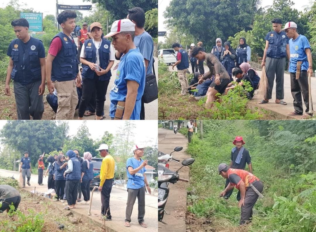 Mahasiswa KKN UNSIKA bekerja sama dengan warga setempat untuk membersihkan lingkungan desa, termasuk membersihkan saluran air, memungut sampah, dan melakukan penghijauan.