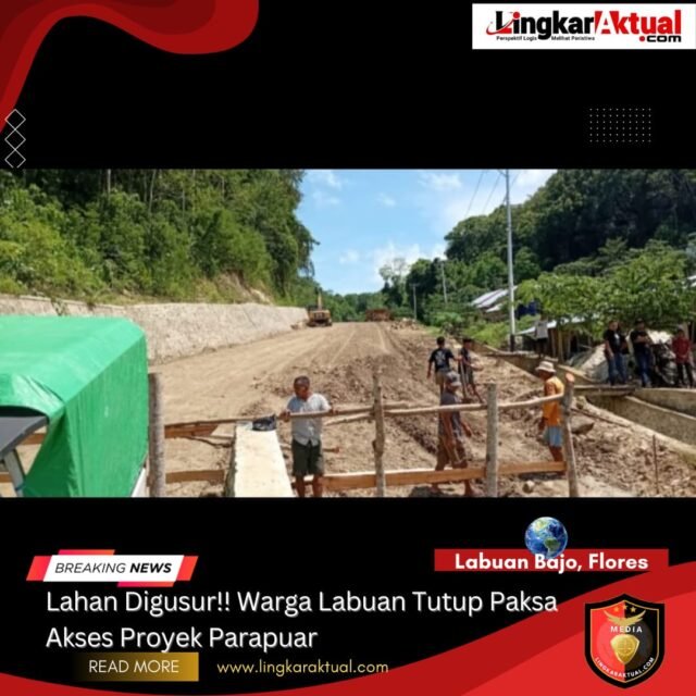 LABUAN BAJO, FLORES || LINGKARAKTUAL.COM || – Warga pemilik lahan di Labuan Bajo memblokir ruas jalan menuju lokasi proyek Badan Pelaksana Otorita Pariwisata Labuan Bajo Flores (BPOLBF) di Parapuar pada Jumat pagi (5/12/2025).