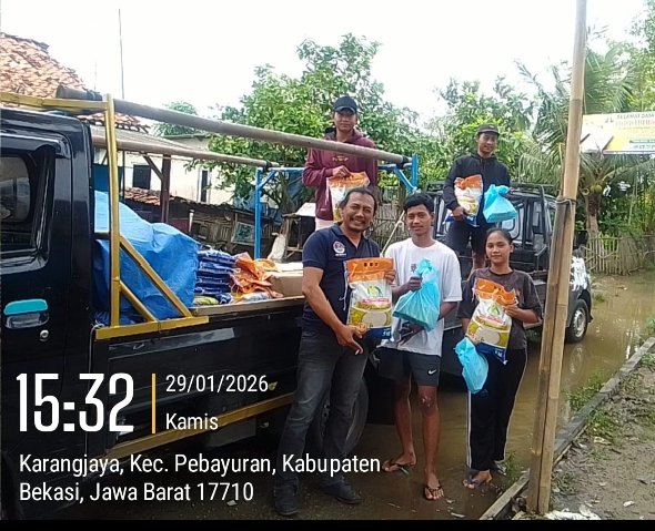 Di Kecamatan Pebayuran, bantuan disalurkan kepada Yayasan Fastabiqul Khoerot Tegal Panas yang menaungi Orang Dengan Gangguan Jiwa (ODGJ) dan berlokasi di Desa Karangjaya. Saat pendistribusian berlangsung pada Kamis, 29 Januari 2026, kondisi lingkungan sekitar yayasan masih dalam keadaan tergenang air akibat banjir.