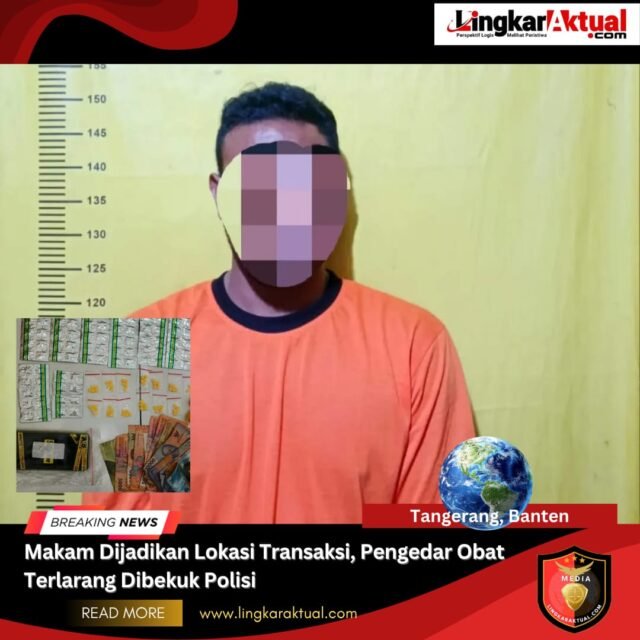 TANGERANG, BANTEN || LINGKARAKTUAL.COM || – Kepolisian Sektor (Polsek) Sepatan, Polres Metro Kota Tangerang, berhasil membekuk seorang pengedar obat daftar G jenis Tramadol dan Eximer yang beroperasi di area pemakaman. Penangkapan dilakukan pada Kamis (9/10/2025), setelah pihak kepolisian menerima laporan masyarakat terkait aktivitas mencurigakan di Pemakaman Kepuh, Desa Kedaung Barat, Kecamatan Sepatan Timur, Kabupaten Tangerang, Banten.