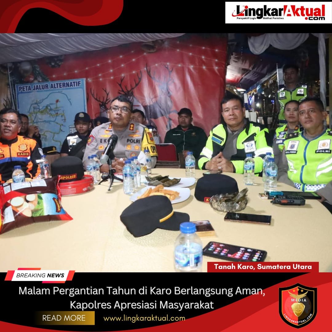 TANAH KARO, SUMATERA UTARA || LINGKARAKTUAL.COM || – Lingkaraktual.com Perayaan malam pergantian tahun 2025–2026 di wilayah Kabupaten Karo berlangsung aman dan kondusif. Pengamanan terfokus pada dua titik keramaian utama, yakni Kota Berastagi dan Kabanjahe, dengan penempatan personel gabungan dan pengaturan lalu lintas secara intensif.