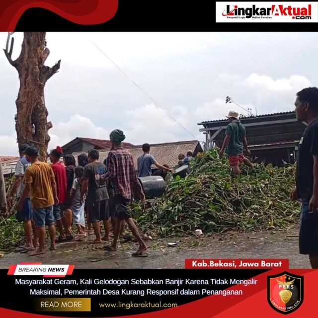 KABUPATEN BEKASI, JAWA BARAT || LINGKARAKTUAL.COM || – Warga di wilayah Desa Sukadarma, Desa Sukajadi, dan Desa Karangsentosa mengaku geram akibat banjir yang kembali terjadi diduga disebabkan oleh aliran Kali Gelodogan yang tidak berfungsi secara maksimal. Selasa (20/01/2026).