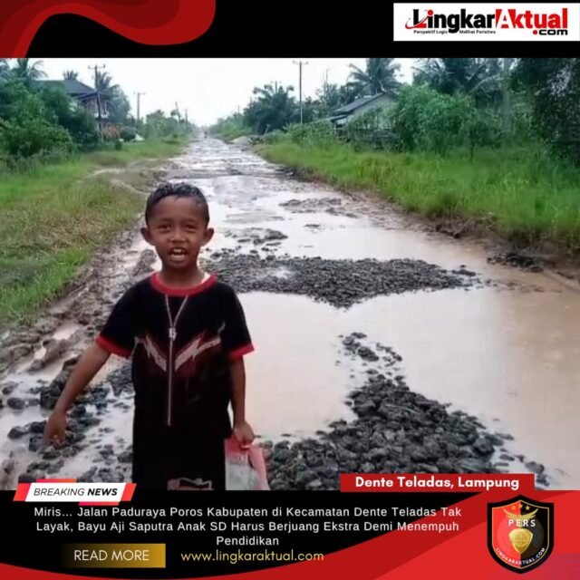 DENTE TELADAS, LAMPUNG, LINGKARAKTUAL.COM Kondisi jalan poros kabupaten di wilayah Dente Teladas sangat memprihatinkan dan jauh dari kata layak. Jalan yang seharusnya menjadi akses utama bagi masyarakat justru dipenuhi kerusakan parah, berlubang, berlumpur, dan sulit dilalui, terutama saat musim hujan. Sabtu (07/03/2026).