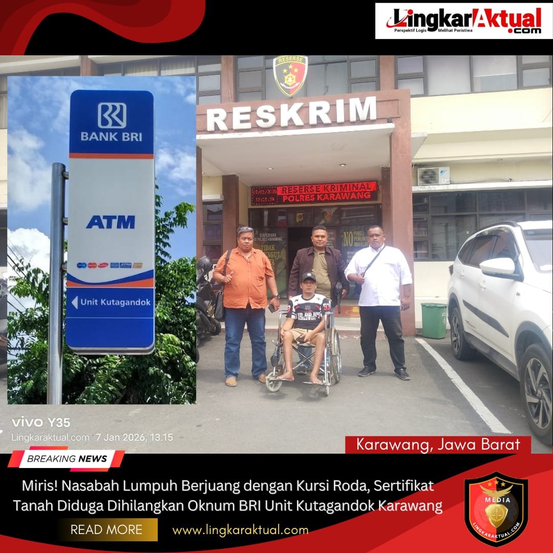 KARAWANG, JAWA BARAT || LINGKARAKTUAL.COM || –Seorang nasabah Bank Rakyat Indonesia (BRI) Unit Kutagandok Karawang berinisial “JJ harus berjuang keras mencari keadilan setelah sertifikat tanah miliknya diduga hilang di dalam penguasaan pihak bank. Rabu (07/01/2026).