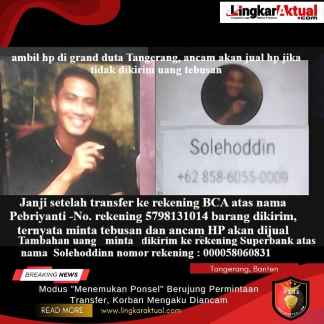 TANGERANG, BANTEN, LINGKARAKTUAL.COM – Sebuah dugaan penipuan dengan modus mengaku menemukan ponsel dilaporkan terjadi pada pertengahan bulan ini. Peristiwa tersebut bermula pada malam tanggal 12/3/2026, ketika seorang pria bernama Solehoddin diduga menemukan atau mengambil sebuah telepon seluler milik orang lain.