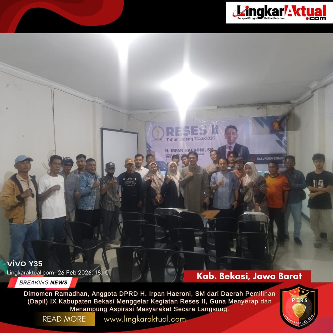 KABUPATEN BEKASI, JAWA BARAT, LINGKARAKTUAL.COM – Pada momentum bulan suci Ramadhan, Anggota DPRD Provinsi Jawa Barat, H. Irpan Haeroni, SM dari Daerah Pemilihan (Dapil) IX Kabupaten Bekasi, menggelar kegiatan Reses II guna menyerap dan menampung aspirasi masyarakat secara langsung.