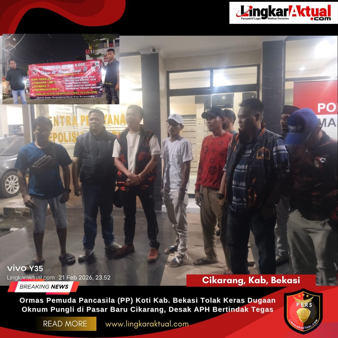 CIKARANG, KABUPATEN BEKASI, LINGKARAKTUAL.COM – Organisasi Kemasyarakatan Pemuda Pancasila (PP) dari Koti Kab. Bekasi menyatakan sikap tegas menolak adanya dugaan praktik pungutan liar (pungli) yang dilakukan oleh oknum tidak bertanggung jawab di kawasan Pasar Baru Cikarang. Sabtu (21/02/2026).