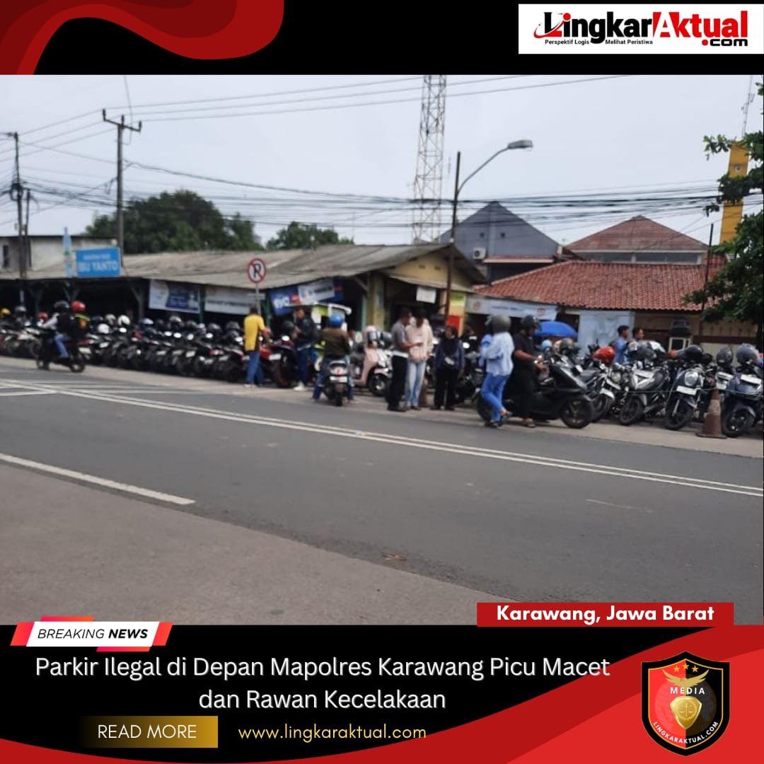 KARAWANG, JAWA BARAT || LINGKARAKTUAL.COM || — Fenomena parkir liar sepeda motor di depan Mapolres Karawang kembali menuai sorotan publik. Sejak 2025 hingga memasuki awal 2026, deretan motor yang diparkir di sisi jalan depan warung-warung sekitar Mapolres Karawang terus meluber hingga memakan bahu jalan dan mengganggu arus lalu lintas.