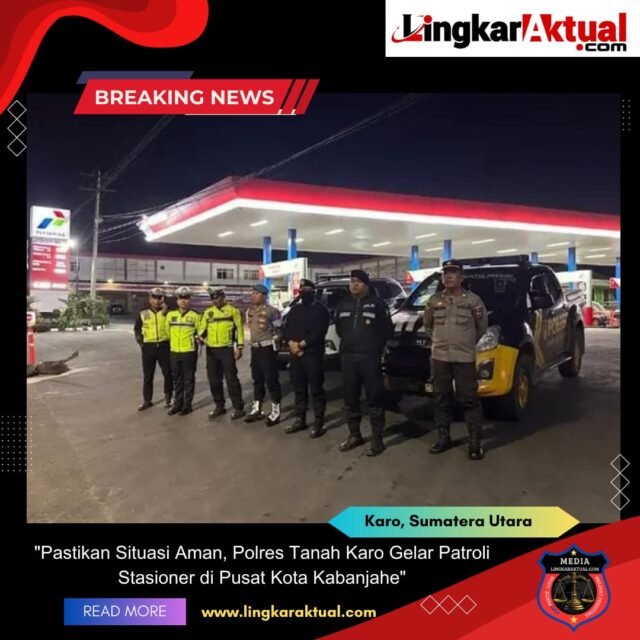 TANAH KARO, Sumatera Utara || Lingkaraktual.com || – Guna menjaga stabilitas keamanan dan ketertiban masyarakat, Polres Tanah Karo menggelar patroli gabungan stasioner pada Jumat(23/5/2025), dini hari. Patroli ini menyasar sejumlah titik strategis di wilayah Kecamatan Kabanjahe yang dinilai rawan terjadi tindak kejahatan, khususnya Curat, Curas, dan Curanmor (3C).