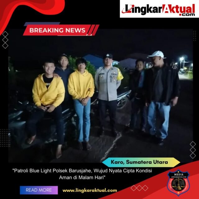 BARUSJAHE-TANAH KARO, Sumatera Utara || Lingkaraktual.com || – Dalam rangka menjaga situasi kamtibmas yang kondusif, personel Polsek Barusjahe melaksanakan Patroli Blue Light pada Sabtu(24/5/2025) dini hari. Patroli ini ditujukan untuk mengantisipasi potensi terjadinya tindak pidana 3C (Curat, Curas, dan Curanmor) serta mencegah aktivitas geng motor di wilayah hukum Polsek Barusjahe.