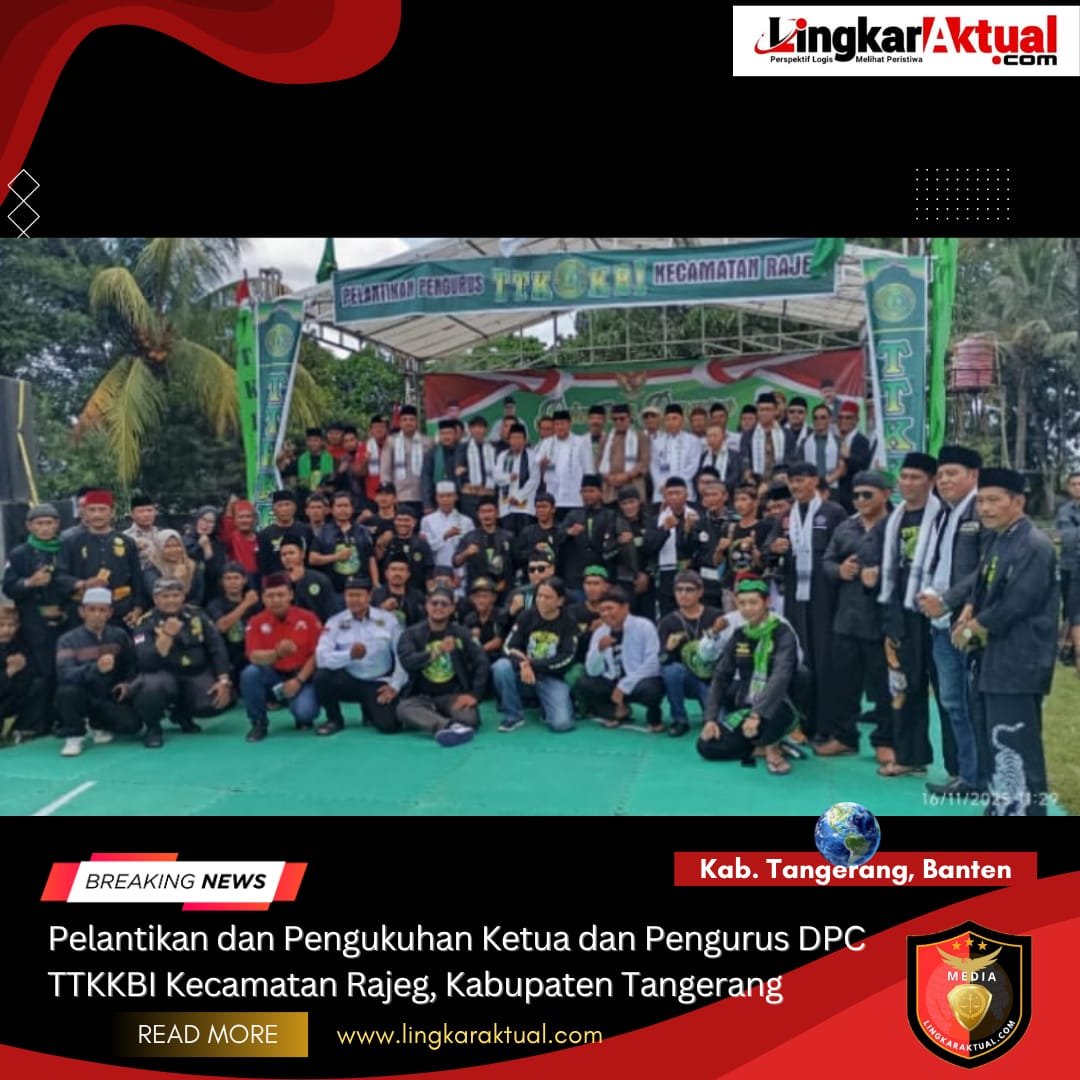 KABUPATEN TANGERANG, BANTEN || LINGKARAKTUAL.COM || – Dewan Pengurus Cabang Tjimande Tari Kolot Karuhun Banten Indonesia (TTKKBI) Kecamatan Rajeg menggelar pelantikan dan pengukuhan Ketua dan Pengurus di Halaman rumah Abah Haji Enju, Kecamatan Rajeg pada Minggu (16/11/2025).