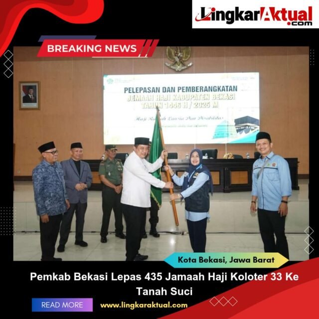 KABUPATEN BEKASI, Jawa Barat || Lingkaraktual.com || Pemerintah Kabupaten Bekasi secara resmi melepas keberangkatan 435 jemaah haji Kloter 33 asal Kabupaten Bekasi menuju Tanah Suci, di Gedung Swatantra Wibawamukti, Komplek Pemkab Bekasi.