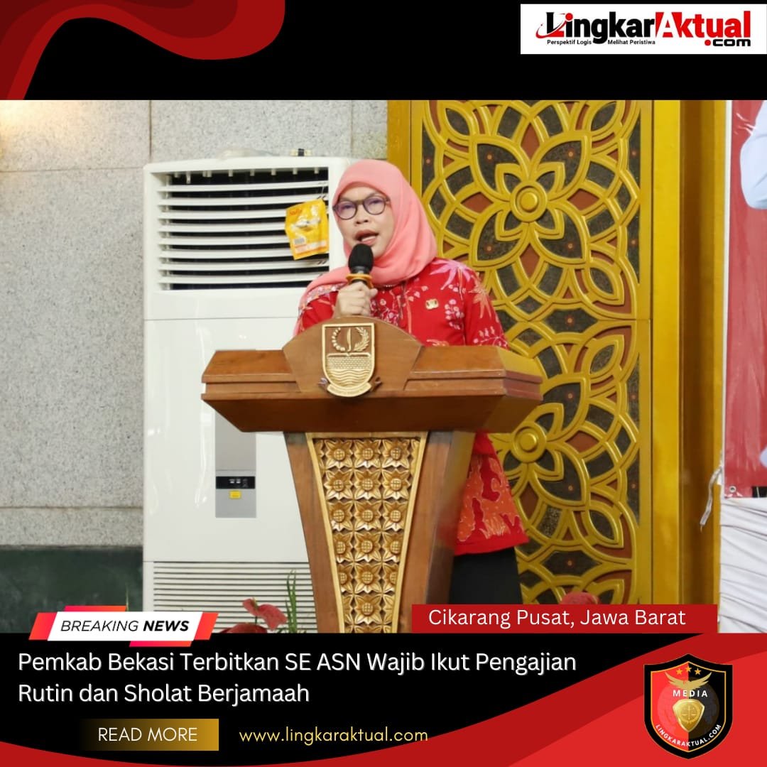 CIKARANG PUSAT, KABUPATEN BEKASI || LINGKARAKTUAL.COM || – Pemerintah Kabupaten Bekasi terus berkomitmen membangun aparatur sipil Negara (ASN) yang religius dan berintegritas. Melalui Surat Edaran Nomor 000.1.1/SE-99/KESRA/2025, Penjabat (Pj) Sekretaris Daerah Kabupaten Bekasi, Ida Farida, menginstruksikan pelaksanaan pengajian rutin serta kewajiban sholat berjamaah bagi ASN muslim di lingkungan Pemkab Bekasi.