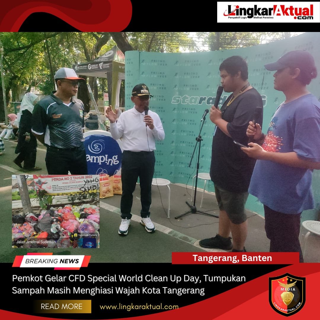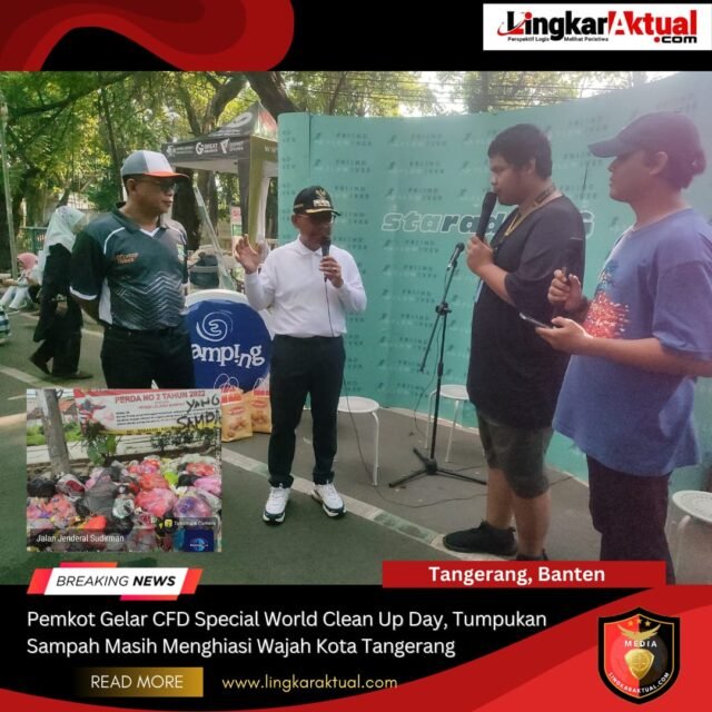 TANGERANG, BANTEN || LINGKARAKTUAL.COM || – Dalam rangka memperingati World Clean Up Day, Pemerintah Kota (Pemkot) Tangerang melalui Dinas Lingkungan Hidup (DLH) menggelar Car Free Day (CFD) di Tugu Adipura dan serentak di 13 kecamatan se-Kota Tangerang, Sabtu (20/9/25).