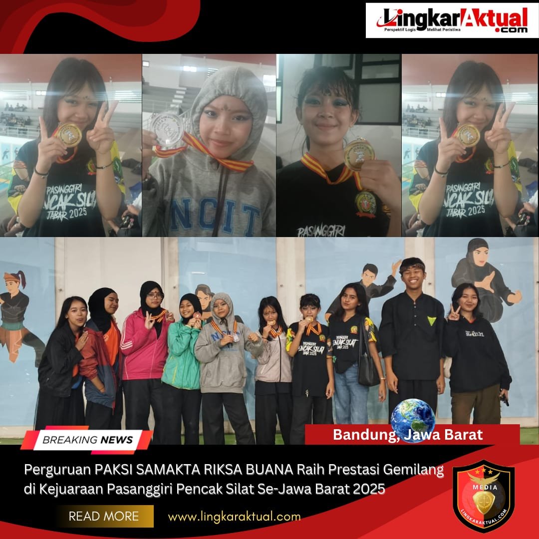 BANDUNG, JAWA BARAT || LINGKARAKTUAL.COM || – 26 Oktober 2025 – Perguruan PAKSI SAMAKTA RIKSA BUANA, di bawah kepemimpinan berhasil menorehkan prestasi membanggakan dalam ajang Pasanggiri Pencak Silat Se-Jawa Barat 2025 yang digelar di Pusat Pencak Silat Jawa Barat, Kiarapayung, Jatinangor, Kabupaten Sumedang.
