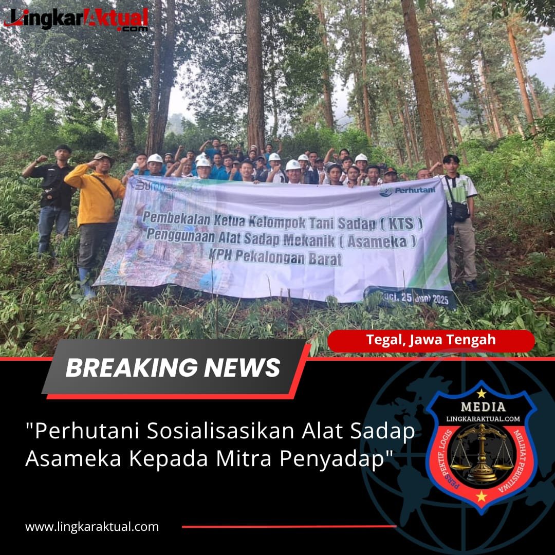 TEGAL, Jawa Tengah || LINGKARAKTUAL.COM || Perhutani Kesatuan Pemangkuan Hutan (KPH) Pekalongan Barat menyelenggarakan kegiatan pembekalan dan sosialisasi alat sadap mekanik (Asameka) kepada para Ketua Kelompok Tani Sadap (KTS) dari tiga wilayah Bagian Kesatuan Pemangkuan Hutan (BKPH), yaitu Moga, Bumijawa, dan Paguyangan.