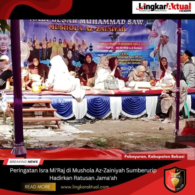 PEBAYURAN, KABUPATEN BEKASI || LINGKARAKTUAL.COM || – Mushola az’zainiah kp pamahan Rt 001/001desa sumber urip menjadi pusat peringatan isra mi,raj 1446H yang di hadiri oleh ratusan jama’ah acara yang berlangsung pada hari minggu, 28-12-2025.
