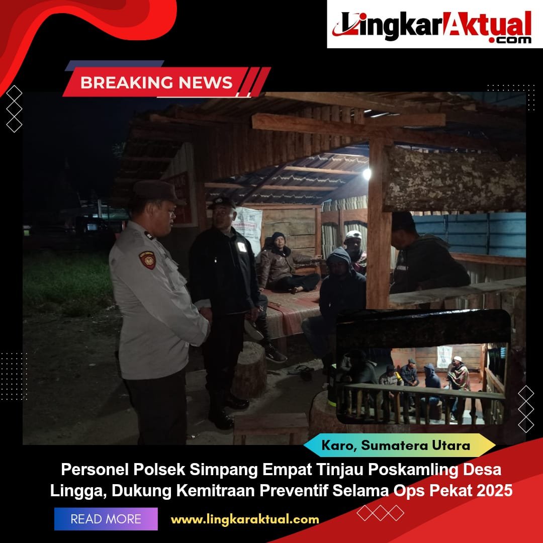 TANAH KARO, Sumatera Utara || LINGKARAKTUAL.COM || Dalam rangka mendukung pelaksanaan Operasi Pekat Toba 2025 serta menjaga stabilitas keamanan lingkungan, personel Polsek Simpang Empat melakukan pengecekan Pos Keamanan Lingkungan (Poskamling) di Dusun 4, Desa Lingga, Kecamatan Simpang Empat, Kabupaten Karo, pada Senin(12/5/2025) dini hari sekitar pukul 00.30 WIB.