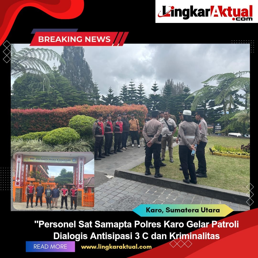 TANAH KARO, Sumatera Utara || LINGKARAKTUAL.COM || Personel Sat Samapta Polres Tanah Karo melaksanakan patroli dialogis di sejumlah lokasi strategis di wilayah Kabupaten Karo, Kamis (15/5), guna mengantisipasi tindak kejahatan 3C (Curat, Curas, Curanmor) serta menjaga keamanan dan ketertiban masyarakat.