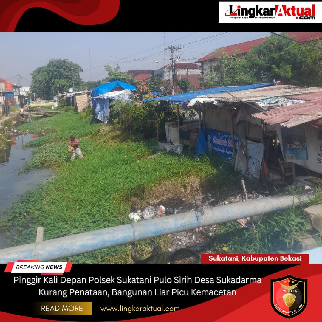 SUKATANI, KABUPATEN BEKASI || LINGKARAKTUAL.COM || – Kondisi pinggir kali di depan Polsek Sukatani, tepatnya di wilayah Desa Sukadarma kecamatan sukatani Hingga Pulo sirih, Kabupaten Bekasi, dinilai semakin semrawut dan tidak tertata. Kamis (25/12/2025).