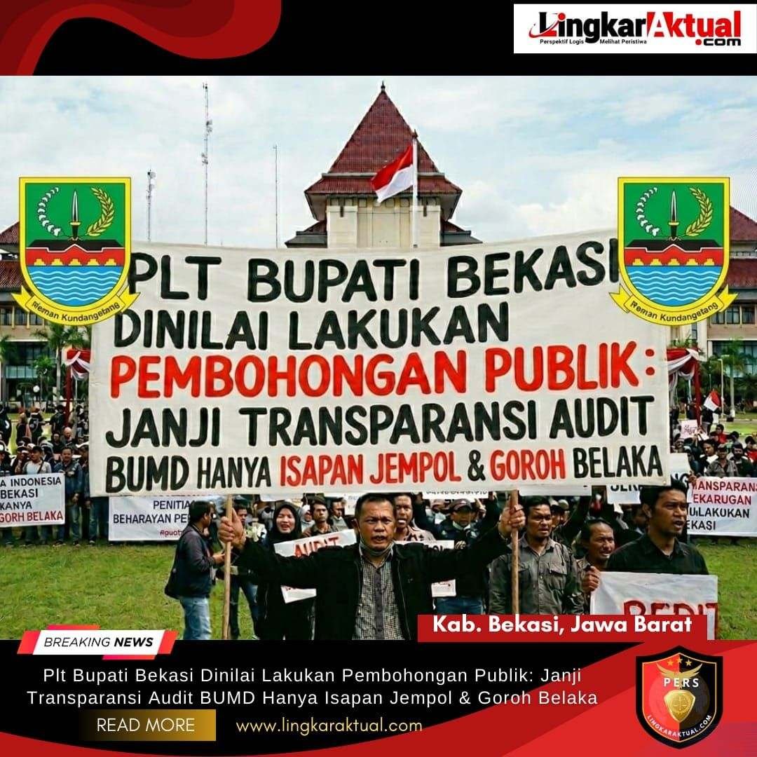BEKASI, JAWA BARAT, LINGKARAKTUAL.COM – Jum’at, 27/02/2026 || Dewan Pimpinan Daerah Ikatan Wartawan Online Indonesia (DPD IWOI) Kabupaten Bekasi secara terbuka menyatakan mosi tidak percaya dan menuding Plt Bupati Bekasi telah melakukan pembohongan publik. Hal ini dipicu oleh sikap bungkam pemerintah daerah terkait hasil audit Badan Usaha Milik Daerah (BUMD) yang hingga kini masih tertutup rapat dari akses masyarakat dan media.