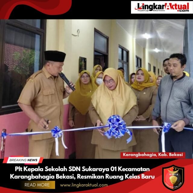 KARANGBAHAGIA, KABUPATEN BEKASI || LINGKARAKTUAL.COM || – Pelaksana Tugas (Plt) Kepala Sekolah SDN Sukaraya 01,Kecamatan Karang Bahagia Bekasi Senin (12-1-2026) Pagi, meresmikan satu unit Ruang Kelas Baru (RKB) Yang dibangun oleh Pemerintah Pusat TA 2025 Dalam Program Revitalisasi.Senin (12/01/2026).