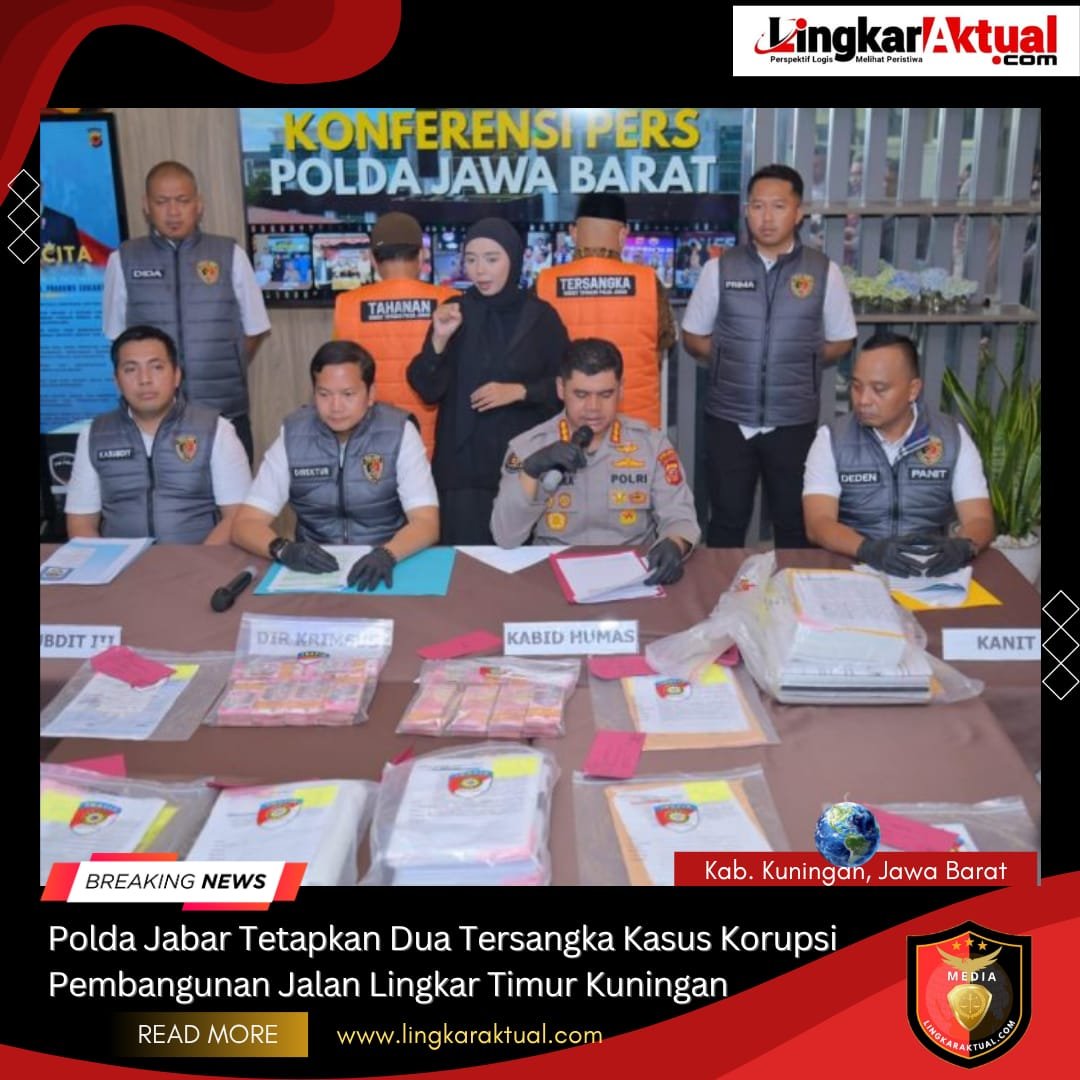 KAB. KUNINGAN, POLDA JABAR || LINGKARAKTUAL.COM || – Direktorat Reserse Kriminal Khusus (Ditreskrimsus) Polda Jawa Barat menetapkan dua orang tersangka dalam kasus dugaan tindak pidana korupsi proyek pembangunan Lingkar Timur Kuningan (lanjutan) Kabupaten Kuningan tahun anggaran 2017.