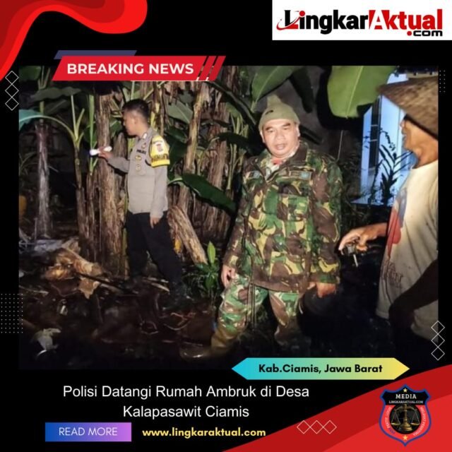 KABUPATEN CIAMIS, Jawa Barat || LINGKARAKTUAL.COM || – Personel Polsek Lakbok Polres Ciamis Polda Jabar secara humanis datang ke kediaman warga yang mengalami musibah rumahnya roboh karena lapuk usang dimakan waktu. Anggota hadir langsung untuk melihat sekaligus membantu korban yang rumahnya ambruk di Dusun Randukuning Rt. 009 Rw. 001, Desa Kalapasawit, Kecamatan Lakbok, Kabupaten Ciamis, Jawa Barat.