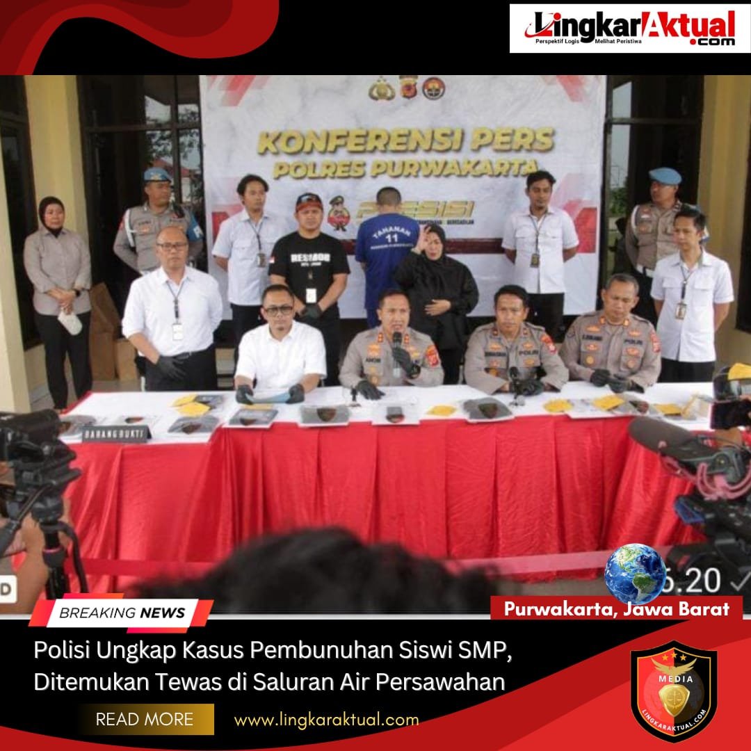 KAB. PURWAKARTA, JAWA BARAT || LINGKARAKTUAL.COM || – Kabid Humas Polda Jabar Kombes Pol. Hendra Rochmawan S.I.K., M.H mengatakan bahwa Polisi beberkan kasus pembunuhan terhadap siswi SMP berinisial J (15) ditemukan tewas di saluran air persawahan di Kampung Bojongloa, Desa Gandasoli, Kecamatan Plered, Pada Sabtu, 18 Oktober 2025, silam.