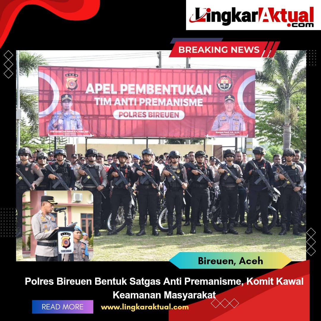 BIREUEN, Aceh || LINGKARAKTUAL.COM || – Polres Bireuen Gelar Apel Pembentukan Tim Satgas Anti Premanisme dalam rangka mencegah dan menindak segala bentuk praktik Premanisme yang dapat mengganggu ketertiban serta kenyamanan Masyarakat