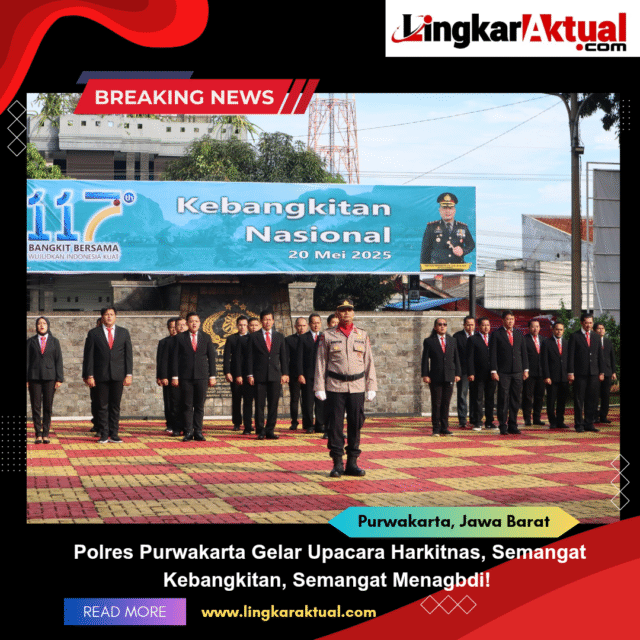 PURWAKARTA, Jawa Barat || Lingkaraktual.com || Dalam rangka memperingati Hari Kebangkitan Nasional (Harkitnas) ke-117, Polres Purwakarta, Polda Jawa Barat menyelenggarakan upacara bendera di Lapangan Mapolres Purwakarta, Pada Selasa, 20 Mei 2025.