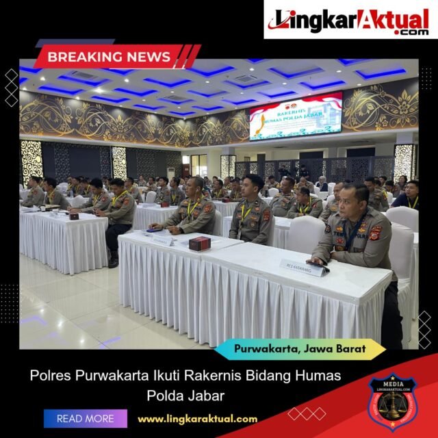 PURWAKARTA, Jawa Barat || LINGKARAKTUAL.COM || – Kapolres Purwakarta, AKBP Lilik Ardhiansyah diwakili Kasi Humas, AKP Enjang Sukandi, bersama 1 personel Sihumas mengikuti Rapat Kerja Teknis (Rakernis) Bidang Humas Polda Jabar yang berlangsung di Aula Dit Lantas Polda Jabar.