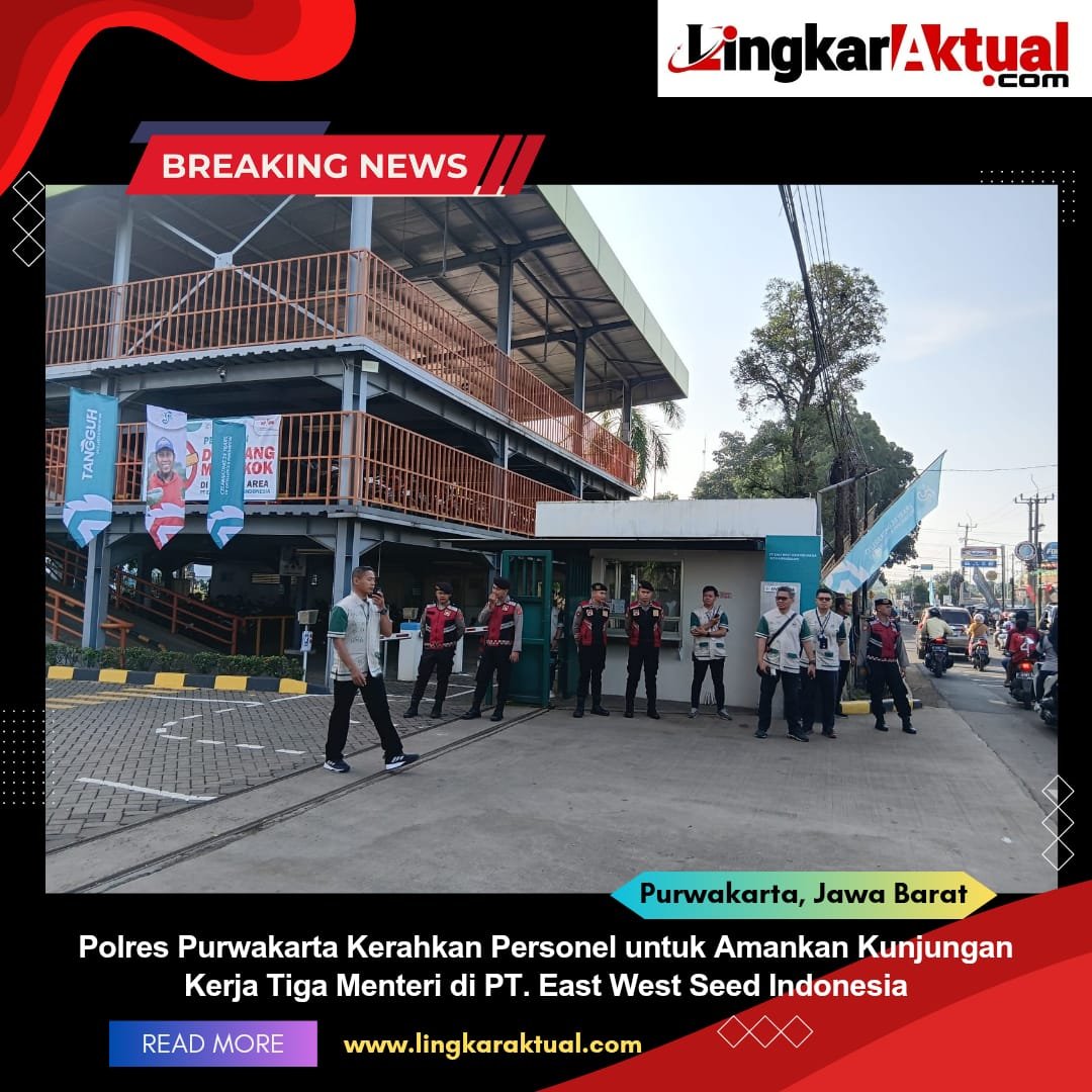 PURWAKARTA, Jawa Barat || LINGKARAKTUAL.COM || Polres Purwakarta lakukan Pengamanan kunjungan kerja Menteri PPN/Kepala Bappenas, Menteri Pertanian, serta Menteri Investasi & Hilirisasi/Kepala BKPM ke PT. East West Seed Indonesia di Desa Benteng, Campaka, Purwakarta, pada Rabu, 14 Mei 2025.
