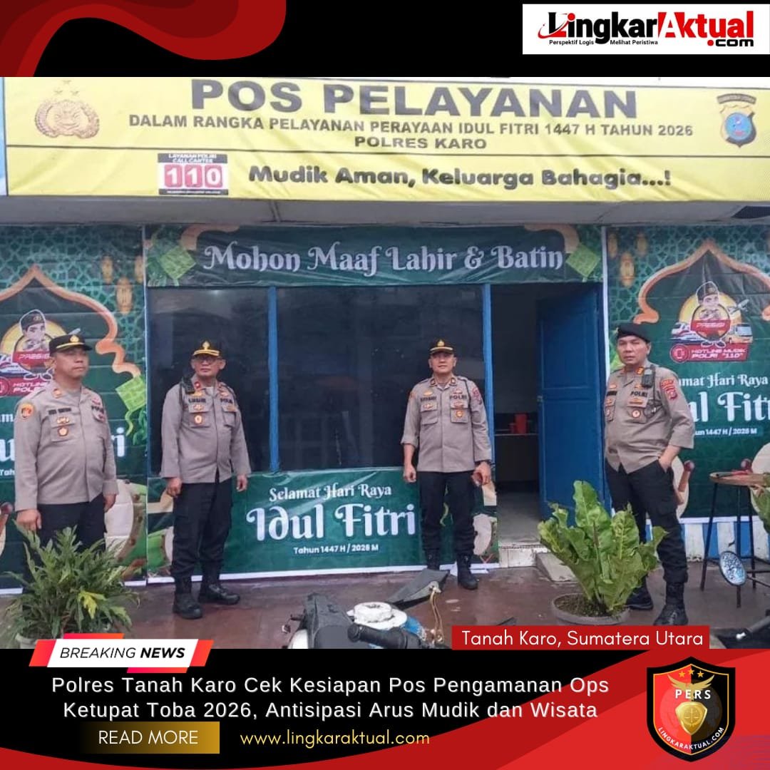 TANAH KARO, SUMATERA UTARA, LINGKARAKTUAL.COM – Menjelang arus mudik dan meningkatnya kunjungan wisata saat perayaan Idul Fitri 1447 Hijriah, Polres Tanah Karo mulai mematangkan berbagai persiapan pengamanan melalui Operasi Ketupat Toba 2026. Salah satunya dengan melakukan pengecekan kesiapan pos pelayanan yang akan digunakan untuk mendukung kelancaran arus lalu lintas dan memberikan pelayanan kepada masyarakat.