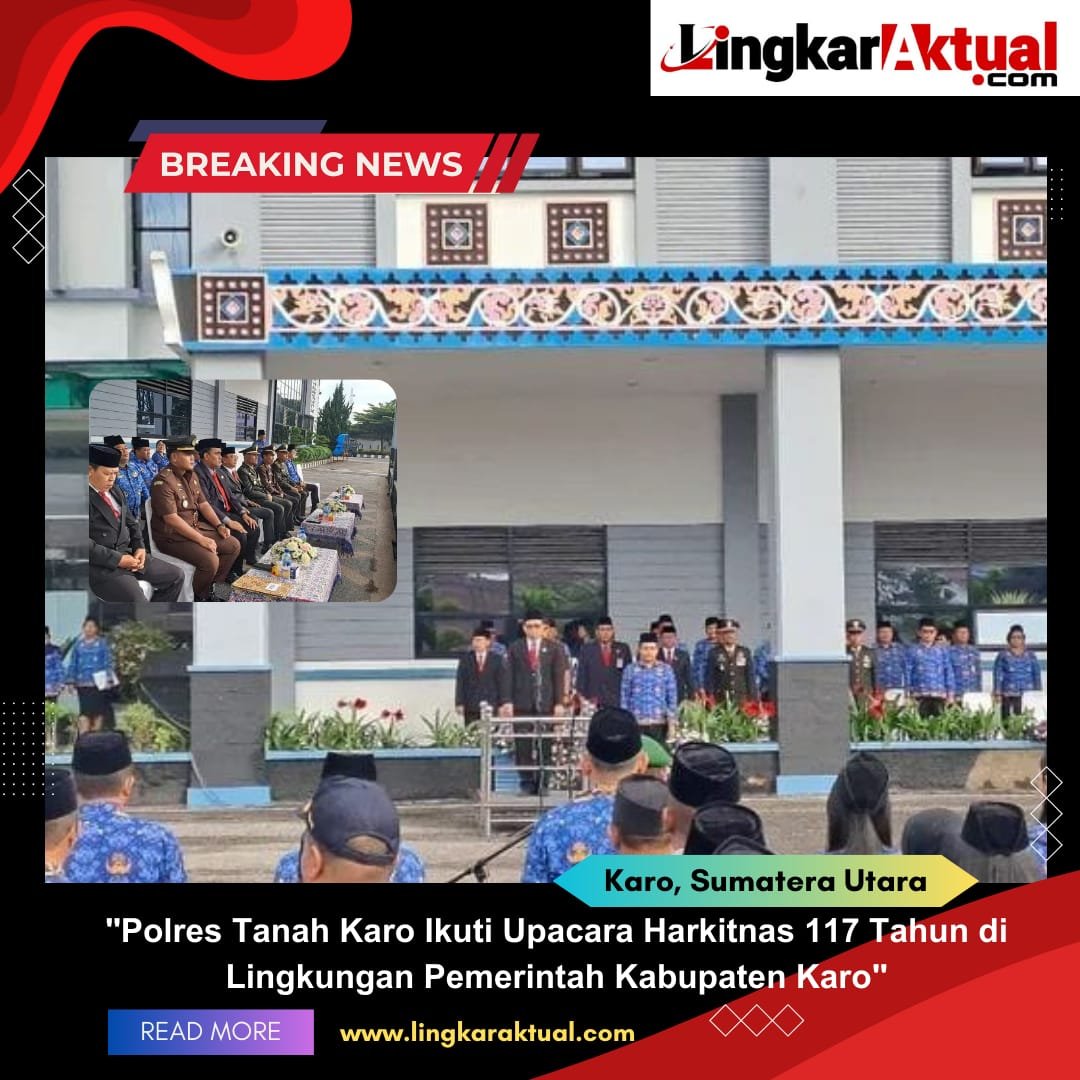 TANAH KARO, Sumatera Utara || Lingkaraktual.com || Dalam rangka memperingati Hari Kebangkitan Nasional (Harkitnas) ke-117 yang mengusung tema “Bangkit Bersama Wujudkan Indonesia Kuat”, Polres Tanah Karo turut ambil bagian dalam upacara bendera yang digelar di Lapangan Kantor Bupati Karo, Selasa (20/5) pagi, sekitar Pukul 07.45 WIB.