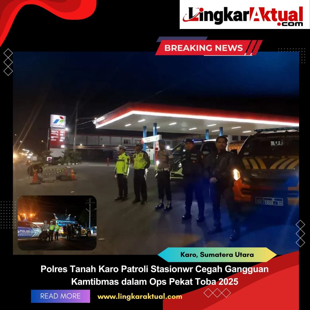 TANAH KARO, Sumatera Utara || LINGKARAKTUAL.COM || Dalam rangka mendukung pelaksanaan Operasi Pekat Toba 2025, Polres Tanah Karo melaksanakan patroli stasioner di sejumlah titik strategis di wilayah Kabupaten Karo pada Jumat malam (9/5/25).