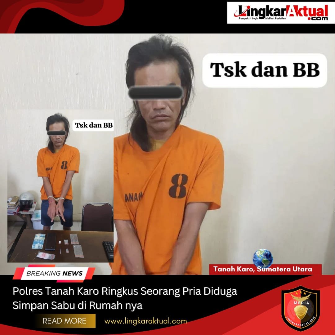 TANAH KARO, SUMATERA UTARA || LINGKARAKTUAL.COM || – Personel Satuan Reserse Narkoba Polres Tanah Karo kembali menunjukkan komitmennya dalam pemberantasan peredaran gelap narkotika. Seorang pria berinisial MG(35), warga Desa Raya, Kecamatan Berastagi, diringkus petugas setelah diduga menyimpan sabu di rumahnya. Penangkapan berlangsung pada Selasa(18/11/2025), sekira pukul 02.00 WIB, di Jalan Jamin Ginting, Desa Raya, Kecamatan Berastagi, Kabupaten Karo.