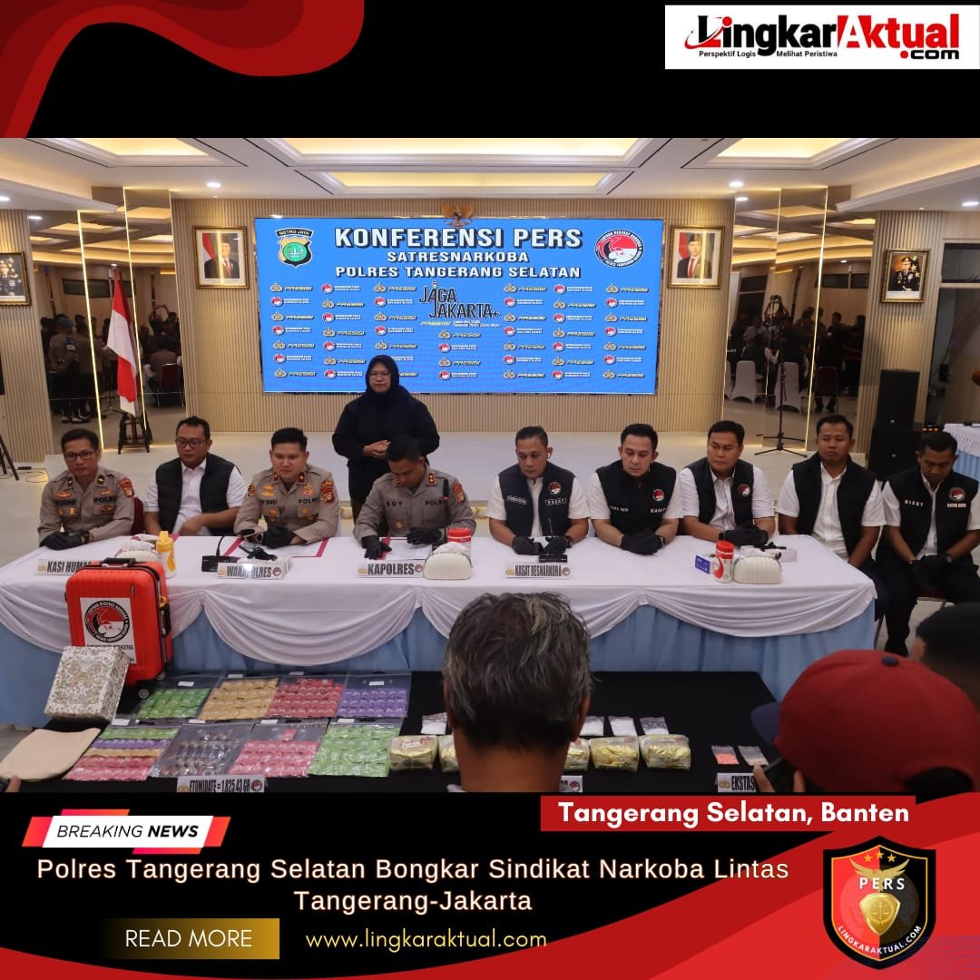 TANGERANG SELATAN, BANTEN, LINGKARAKTUAL.COM – Satuan Reserse Narkoba Polres Tangerang Selatan berhasil mengungkap peredaran narkoba besar-besaran di wilayah Tangerang Selatan, Kota Tangerang, dan DKI Jakarta.