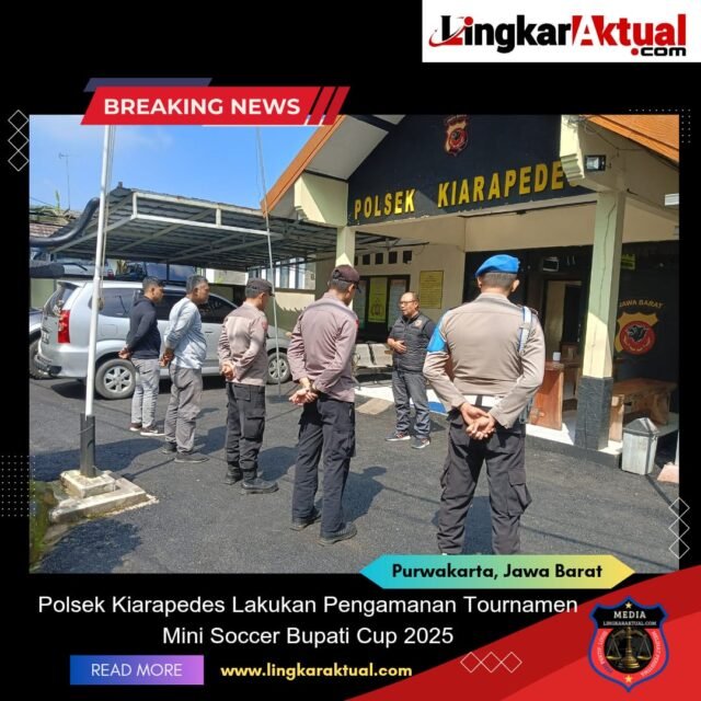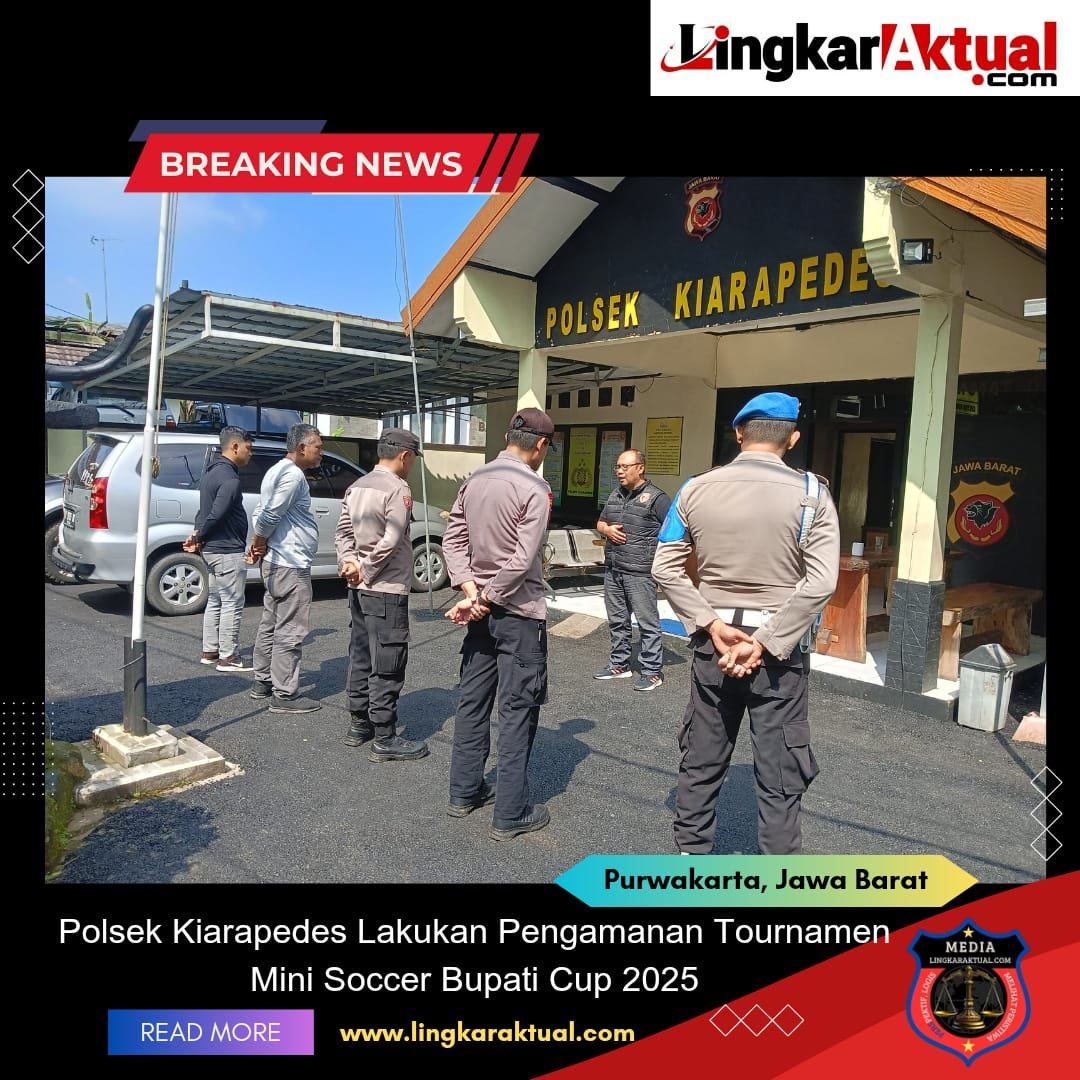 PURWAKARTA, Jawa Barat || LINGKARAKTUAL.COM || Demi terwujudnya situasi Kamtibmas yang aman dan Kondusif dalam Tourmamen Sepak Bola Mini Soccer Bupati Cup 2025, Polsek Kiarapedes, Polres Purwakarta lakukan pengamanan.