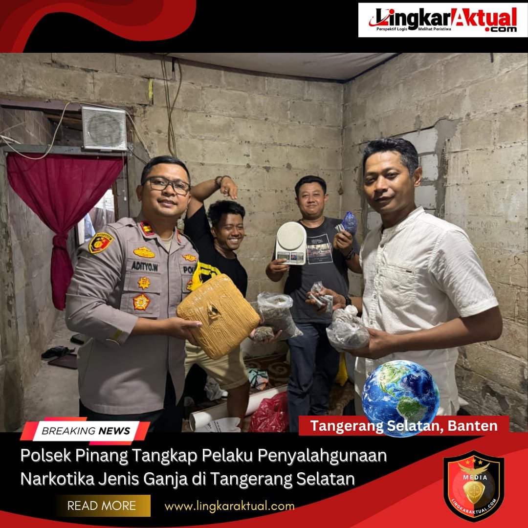 TANGERANG SELATAN, BANTEN || LINGKARAKTUAL.COM || – 11 Oktober 2025 — Unit Reserse Kriminal (Reskrim) Polsek Pinang, Polres Metro Tangerang Kota berhasil mengamankan seorang pelaku tindak pidana penyalahgunaan narkotika jenis ganja pada Sabtu, 11 Oktober 2025 sekitar pukul 15.00 WIB. Pelaku berinisial AG, warga Jl. Tuntang 2 Kelurahan Bencongan, Kecamatan Kelapa Dua, Tangerang Selatan.