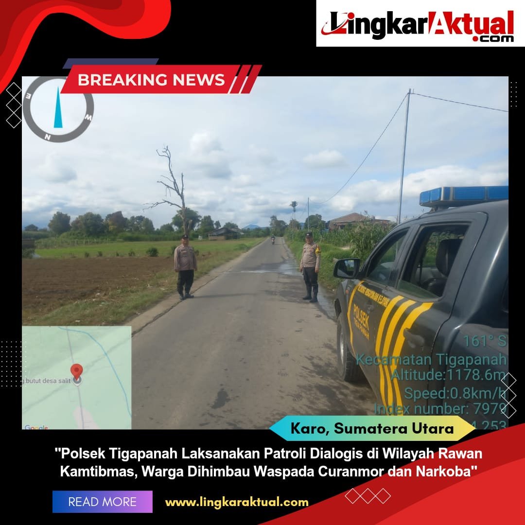 TANAH KARO, Sumatera Utara || Lingkaraktual.com || Dalam rangka menjaga stabilitas keamanan dan ketertiban masyarakat (Kamtibmas), personel Polsek Tigapanah melaksanakan patroli rutin pada Minggu(18/5/2025) mulai Pukul 09.00 WIB hingga selesai. Patroli ini difokuskan di sejumlah titik rawan di wilayah hukum Polsek Tigapanah, Kabupaten Karo.