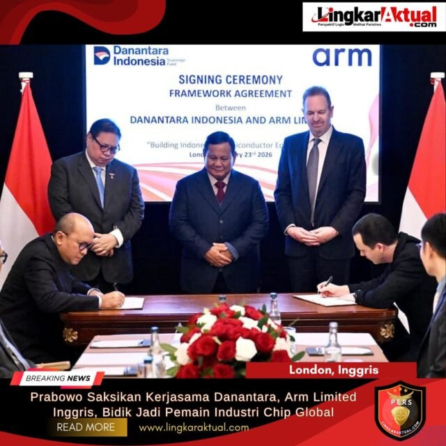LONDON, INGGRIS, LINGKARAKTUAL.COM – Presiden Republik Indonesia Prabowo Subianto menyaksikan penandatanganan kerangka kerja antara Danantara dan Arm Limited di London, Inggris. Kerangka kerja ini di antaranya memperkuat visi Indonesia dalam penguasaan teknologi semikonduktor atau chip.