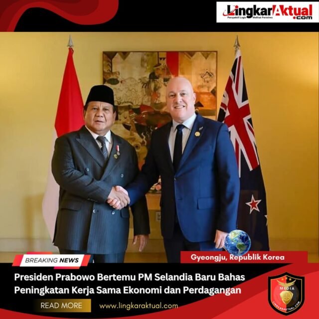 GYEONGJU, REPUBLIK KOREA || LINGKARAKTUAL.COM || – Presiden RI Prabowo Subianto mengadakan pertemuan bilateral dengan PM Selandia Baru Christopher Luxon di Ruang Agenas, Hotel Lahan Select Gyeongju, Jumat (31/10/2025). Pertemuan berlangsung di sela-sela rangkaian KTT APEC 2025 yang digelar di Gyeongju, Republik Korea.