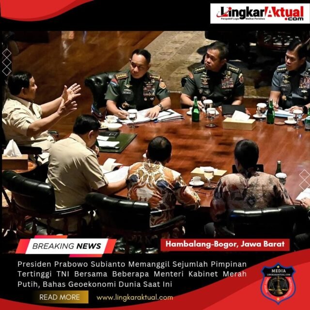 HAMBALANG-BOGOR, Jawa Barat || Lingkataktual.com || – Presiden Prabowo Subianto memanggil sejumlah pimpinan tinggi TNI bersama beberapa menteri Kabinet Merah Putih di kediaman pribadinya di Hambalang, Kabupaten Bogor, Jawa Barat, pada Jumat, 1 Agustus 2025.