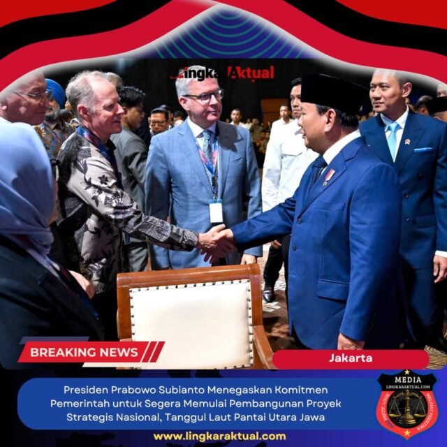 JAKARTA || LINGKARAKTUAL.COM || – Presiden Prabowo Subianto menegaskan komitmen pemerintah untuk segera memulai pembangunan proyek strategis nasional Giant Sea Wall atau Tanggul Laut Pantai Utara Jawa, yang merupakan salah satu infrastruktur paling vital untuk melindungi kawasan pantai utara Pulau Jawa dari ancaman rob dan perubahan iklim ekstrem.