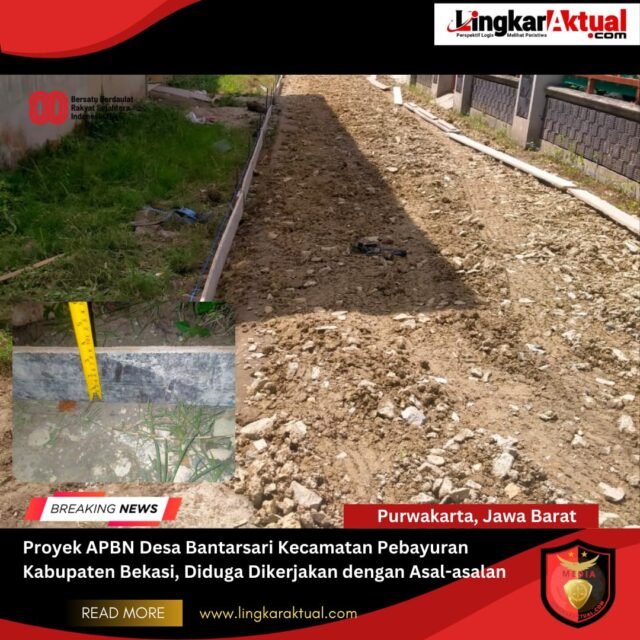PEBAYURAN, KABUPATEN BEKASI, Jawa Barat || LINGKARAKTUAL.COM || – Rabu 27 Agustus 2025 – Proyek Sepanjang 71 m tersebut terletak di Kp. Leuweung Gede Rt 002 Rw 002 proyek tersebut diduga dalam pengerjaan asal-asalan. Rabu (27/08/2025).