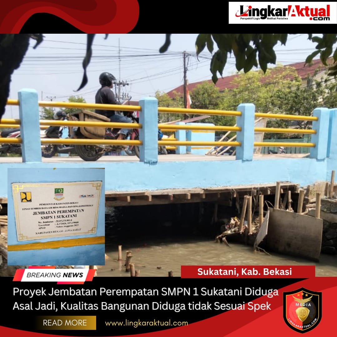Pembangunan jembatan SMPN 1 sukatani sebelumnya menuai sorotan publik, dari mulai pembangunan nya yang dikerjakan memakan waktu sangat lama, dan kini selesai dikerjakan diduga pengerjaan nya asal jadi.