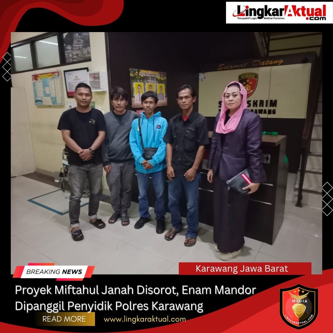 KARAWANG, JAWA BARAT || LINGKARAKTUAL.COM || – Beberapa orang kepala tukang atau mandor yang terlibat dalam proyek milik Pemerintah Daerah Karawang menjalani pemeriksaan oleh penyidik Polres Karawang pada hari ini. Nama mandor tersebut : IRWANTO, MARCO, M ROZAK, DEDI, TASIM.